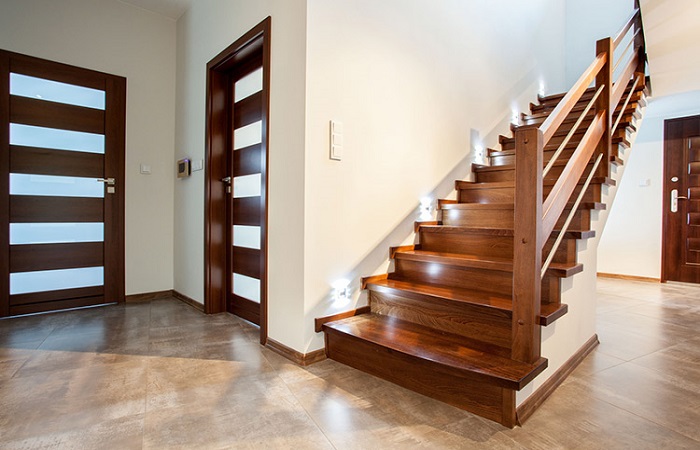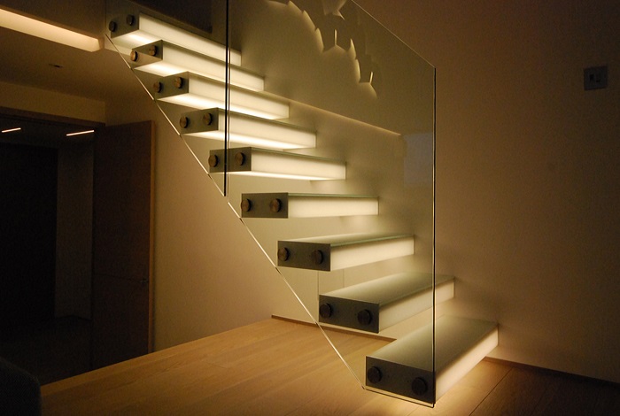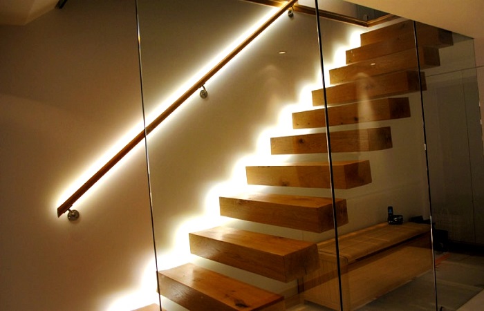 Lighting can not only beautify staircases, but also plays a major role in the safety of staircases. LED lighting can be fixed on the wall, on a step, on the handrail or even on the riser. With an assorted possibilities of LED technology, it can showcase the stairs in their best light. But, make sure that the lighting does not cast shadows onto the steps.